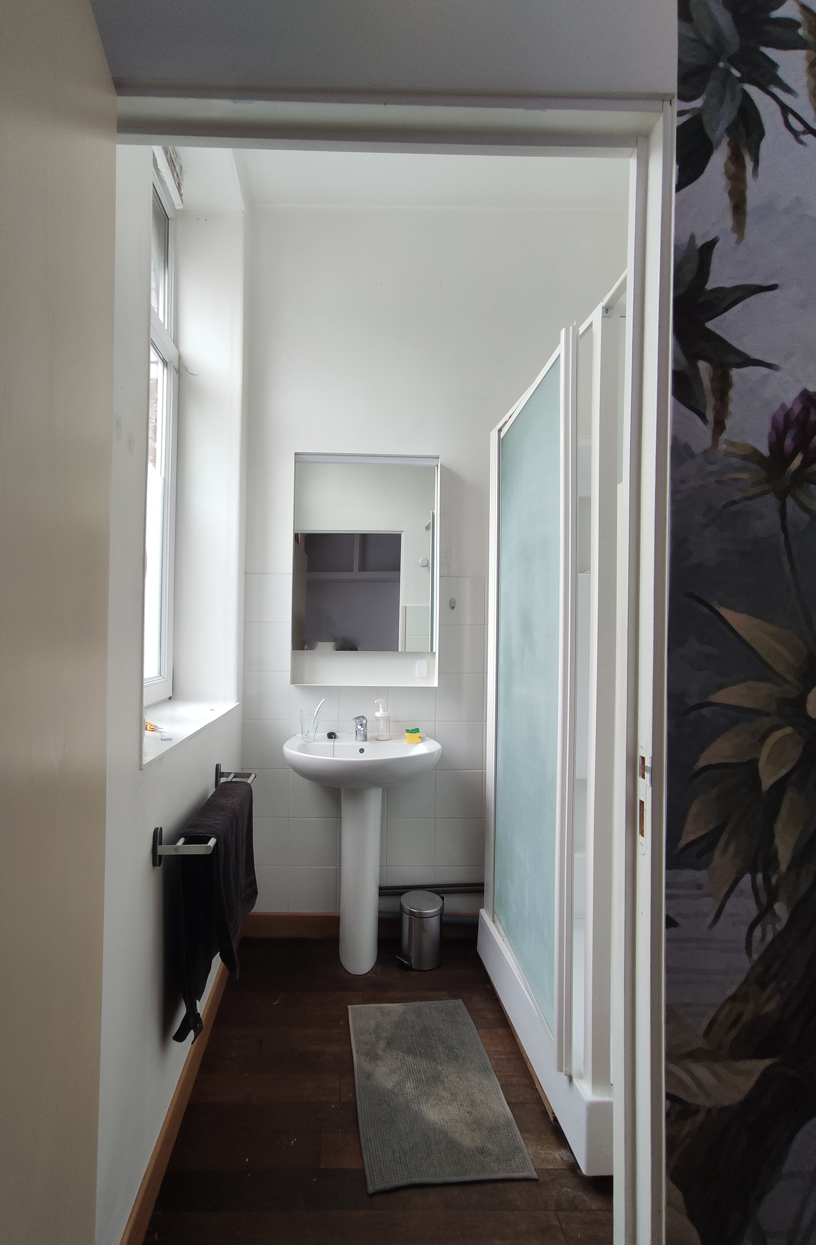 Elle dispose d'une salle de douche privative attenante qui se compose d'un lavabo et d'une douche