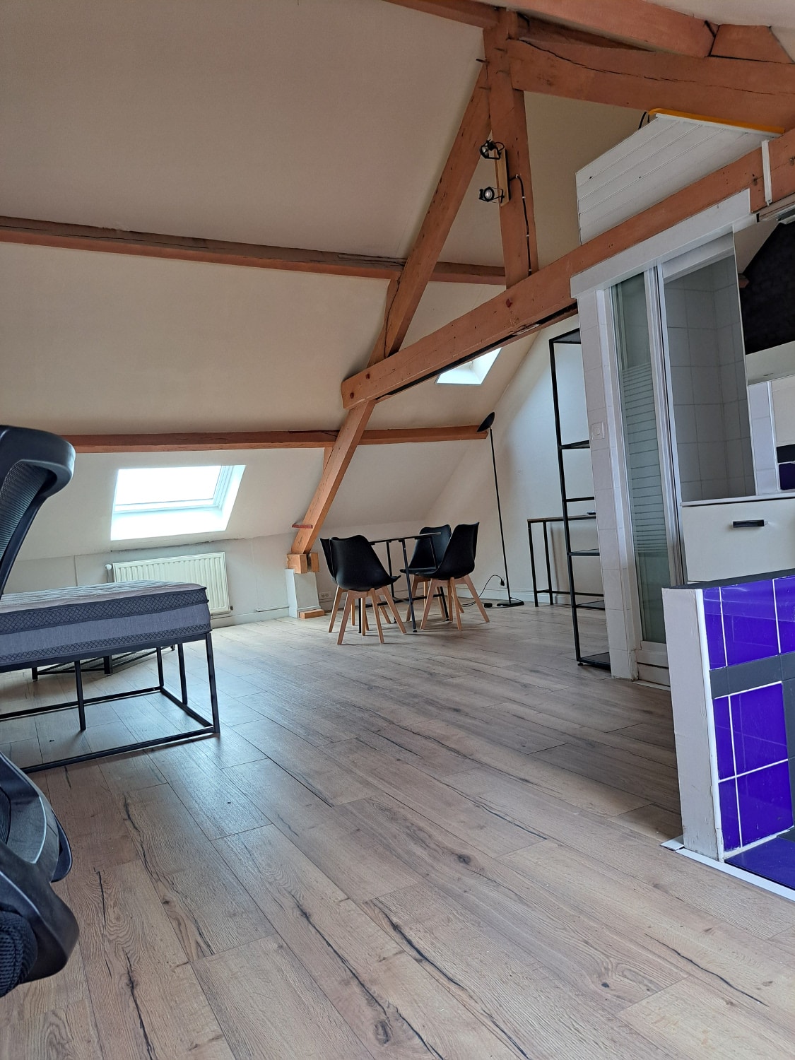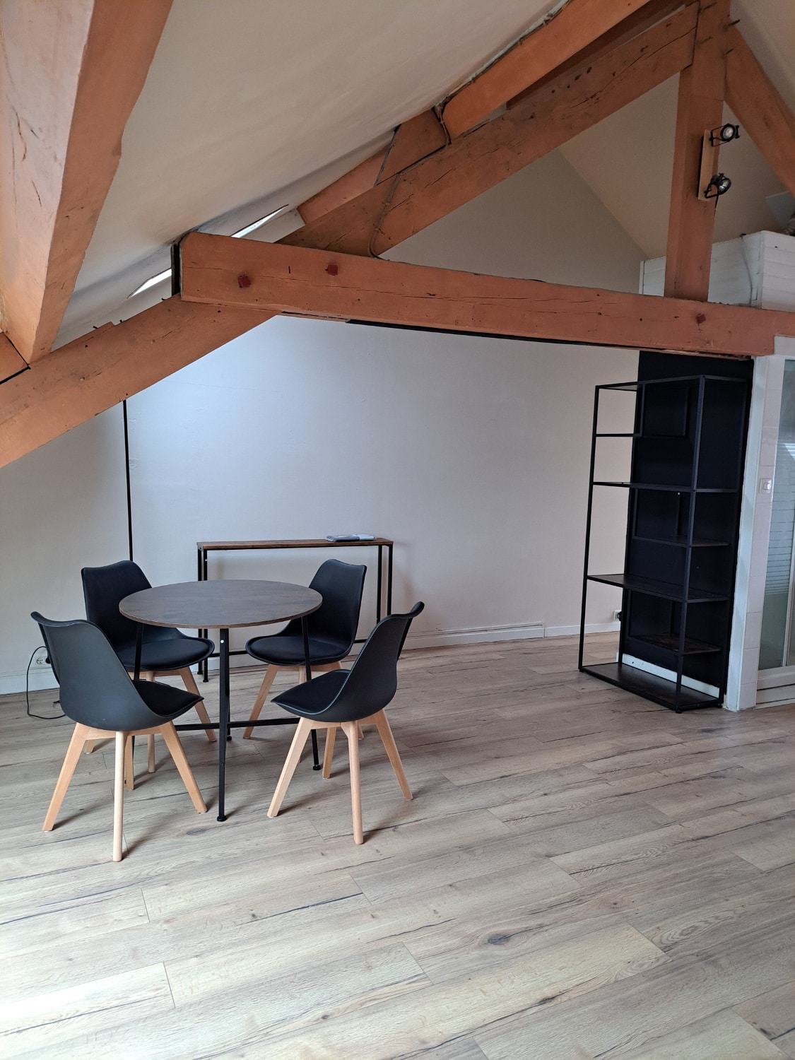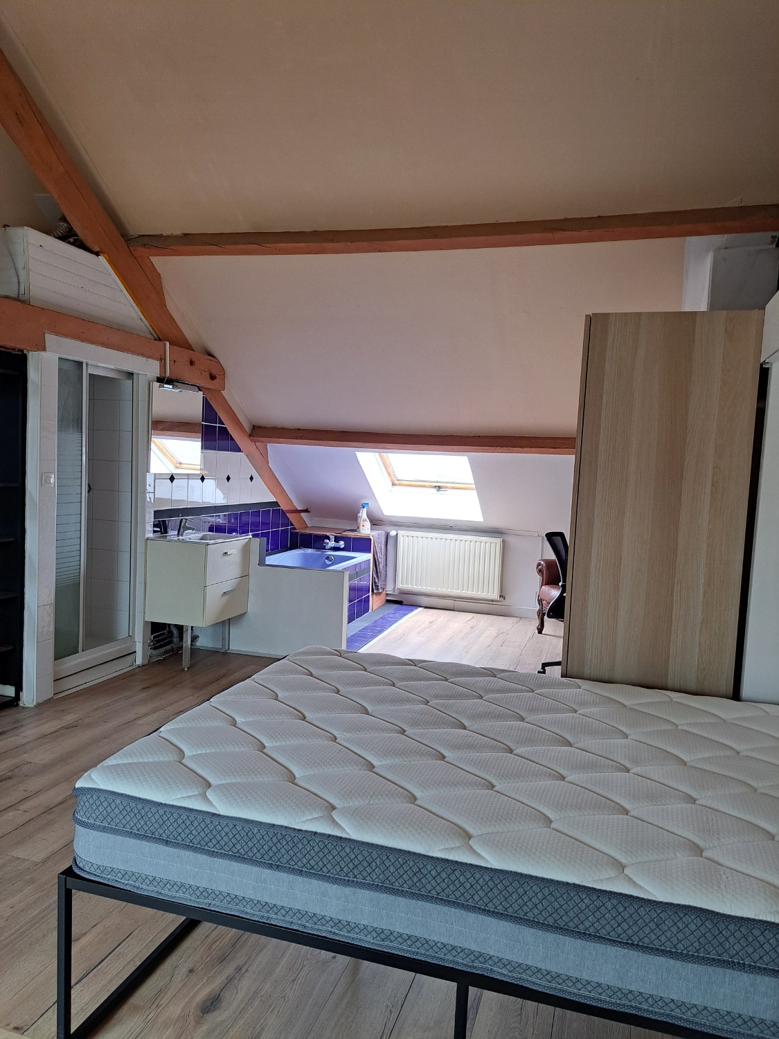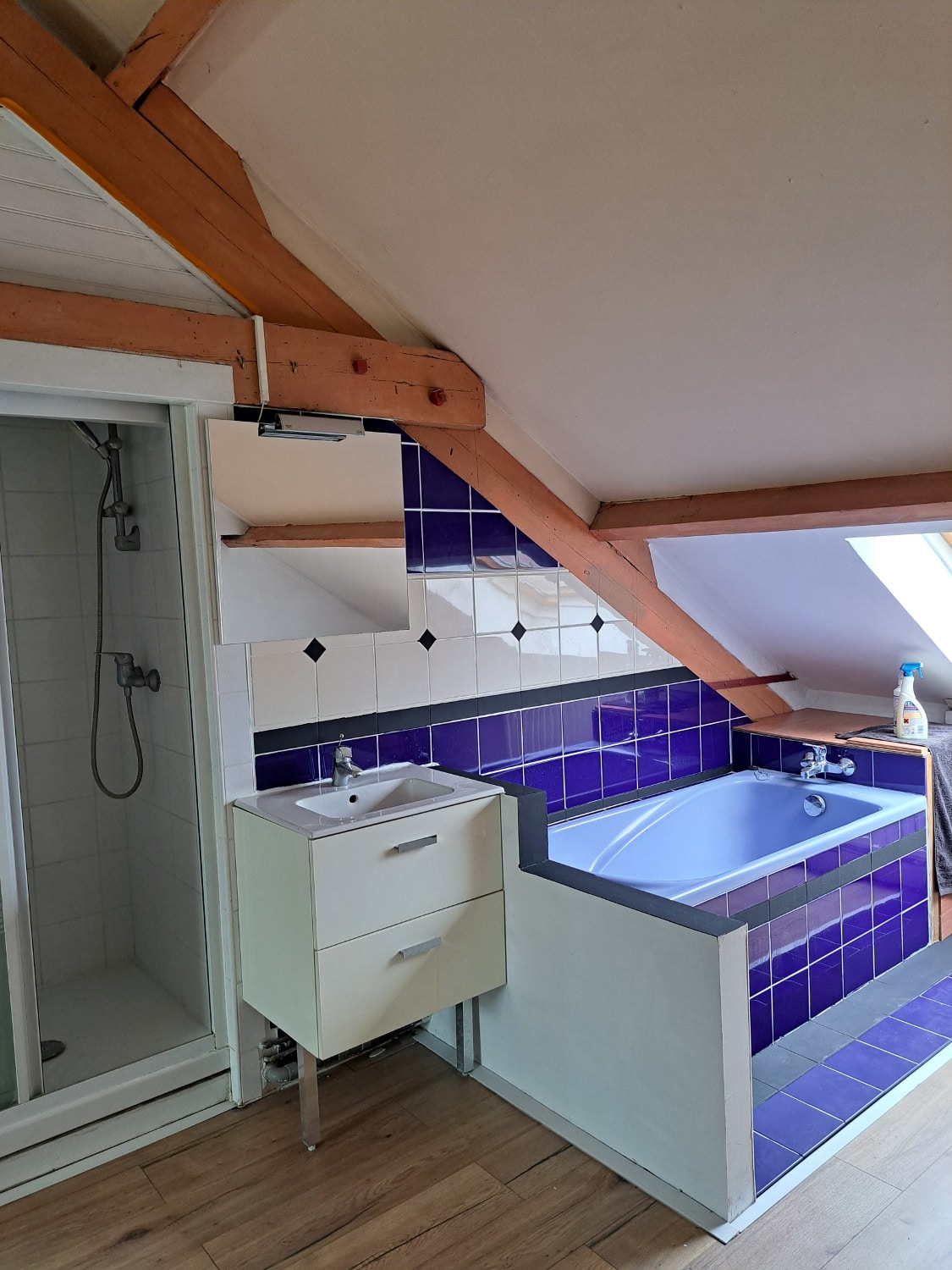 La chambre se trouve au 3eme et dernier étage. Elle est entièrement équipée et décorée en style industriel. Elle dispose d'une de douche, un lavalo et d'une baignoire privative