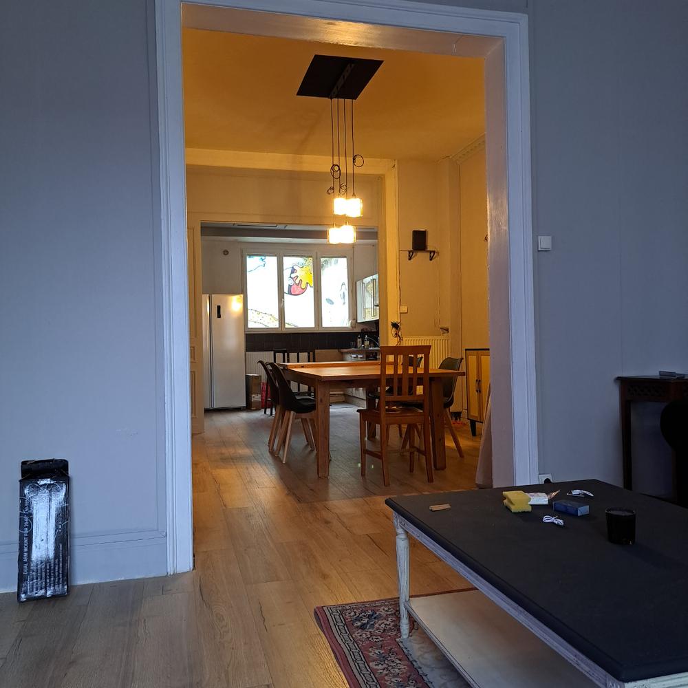 Le salon se trouve au rez-de-chaussée sur rue, le parquet a été remplacé en 2024, les volets roulants en 2025 et sont à energie solaire. D'une surface de plus de 20 m2, cette pièce peut facilement être transformée en chambre par simple ajout d'une porte.